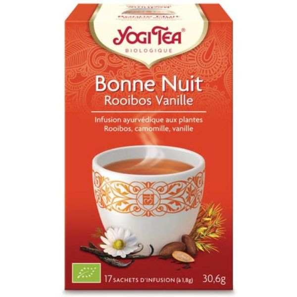 Le Yogi Tea Bonne Nuit, Rooibos et Vanille, est un mélange apaisant et relaxant en sachets de 17. Infusé avec du rooibos et de la vanille, il favorise un sommeil réparateur. Infuser dans de l'eau chaude et déguster avant le coucher pour une nuit paisible.